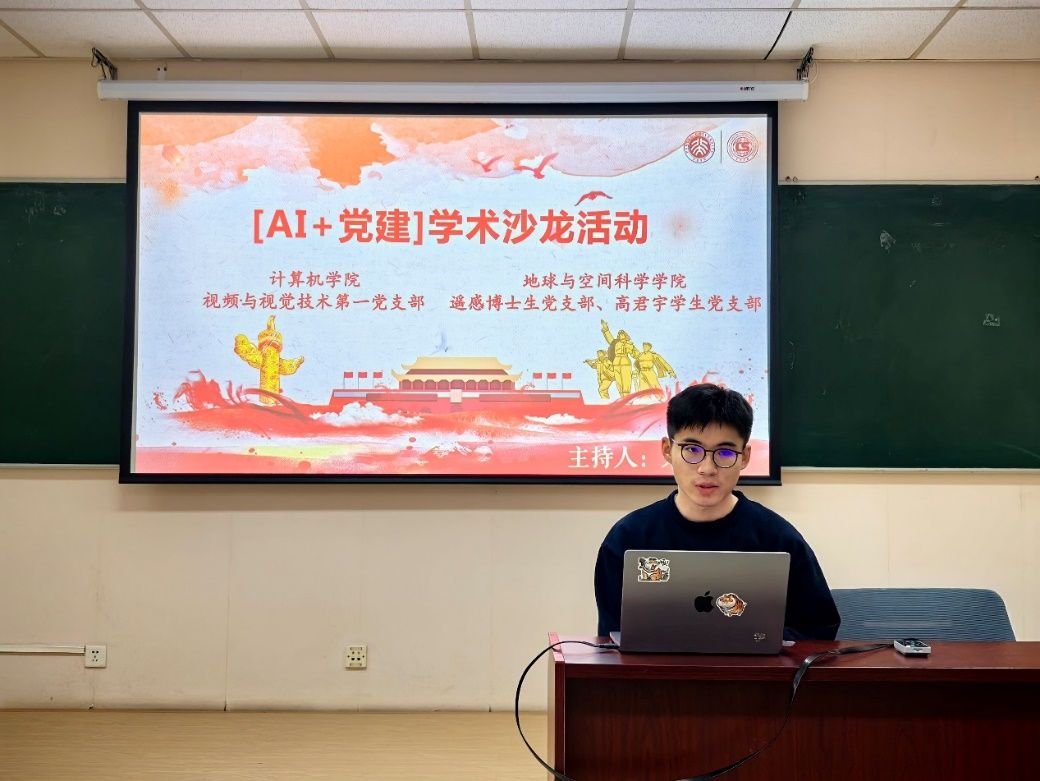 遥感博士生党支部、高君宇学生党支部与计算机学院视频与视觉技术第一党支部在理科一号楼1126联合开展“智汇青春交叉赋能,视觉技术创见未来”博士生学术沙龙。四位博士生代表分享各自领域内的前沿科技进展并交流科研心得,活动由计算机学院视频与视觉技术第一党支部书记宋莘鹏主持。