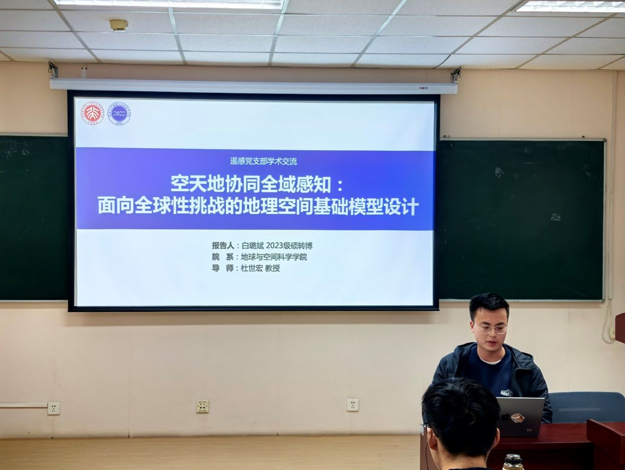 遥感博士生党支部白璐斌同志围绕“空天地协同全域感知技术”主题,系统介绍了面向全球性挑战的地理空间基础模型设计。他阐述了团队研发的首个空天地协同的地理空间基础模型GeoLink。该模型的成功部署为应对全球性挑战提供了创新的地理空间智能解决方案,标志着我国在地理空间基础模型研究方面取得重要进展。