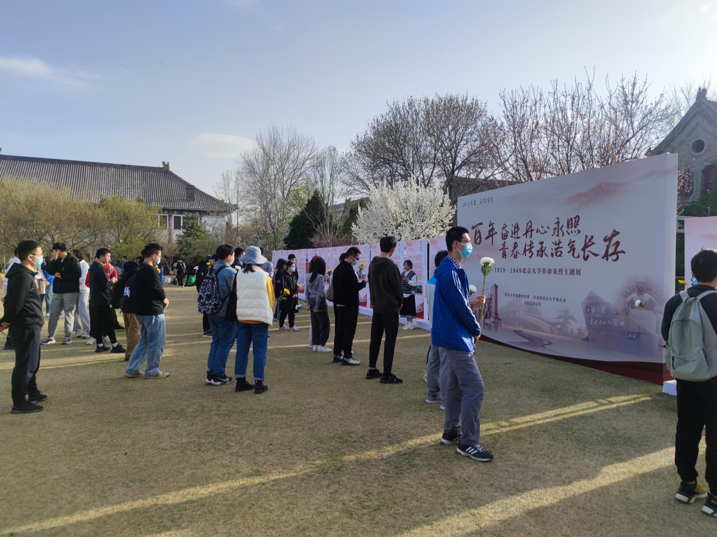 革命英烈主题展,并向北大革命烈士纪念碑敬献鲜花。伴随着志愿讲解员的解读,传颂英雄红色故事,激励北大学子铭记革命历史,慎终追远,珍惜幸福生活,凝聚奋进力量。
