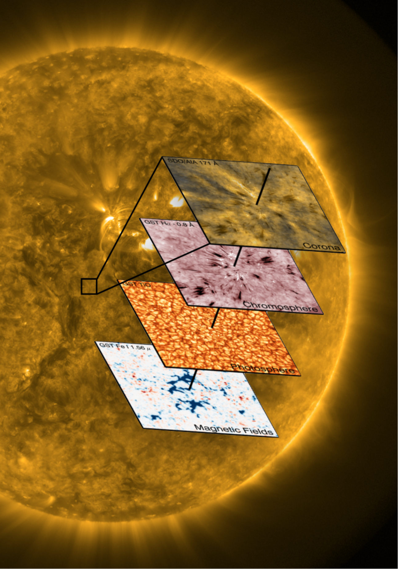 图3 GST望远镜和SDO卫星对太阳大气不同层次的协同观测结果(Samanta, Tian, Yurchyshyn, et al. 2019, Science)